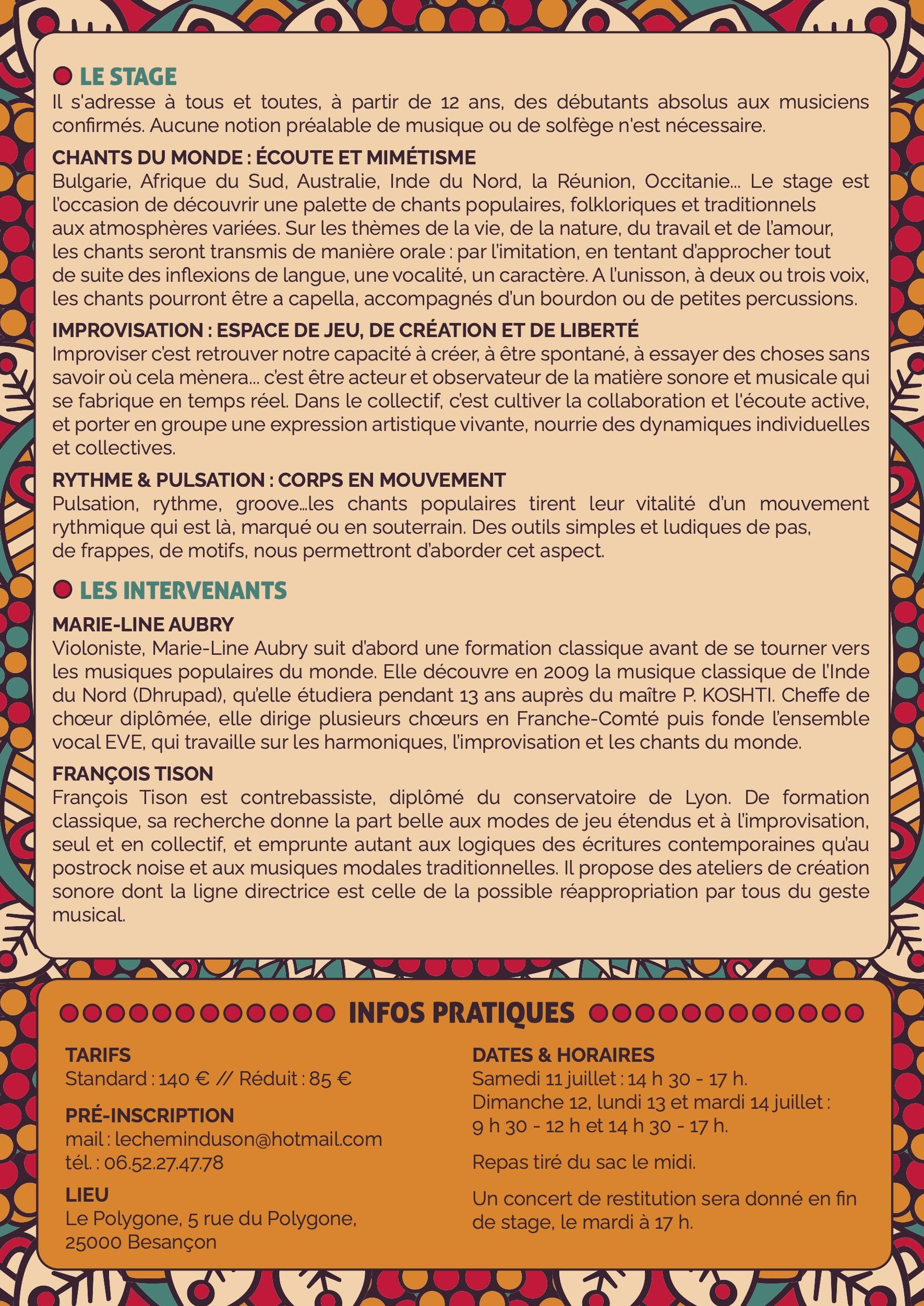 ⇒Proposer des enseignements sous forme d’ateliers, de cours individuels, ou de stages qui permettent une exploration ponctuelle ou approfondie de la voix et/ou de l’instrument, en utilisant les bases de la musique classique indienne.
